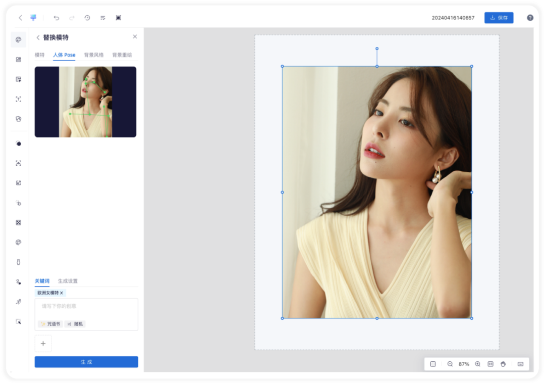 如果需要讓「新模特」具備(bèi)相似的姿勢,更好地突出展示産(chǎn)品,那麽利用「人體Pose」功能即可實現。
