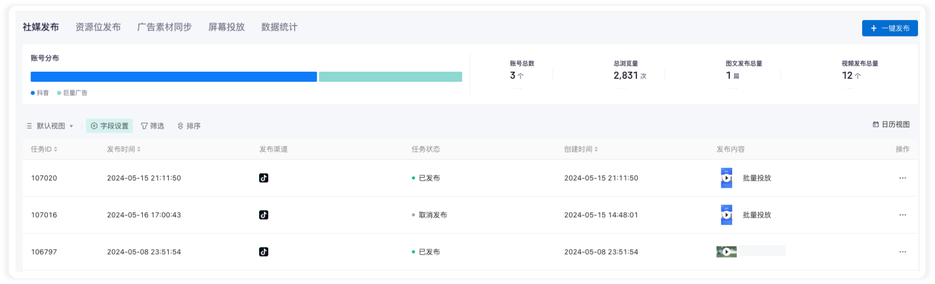 對於(yú)審核評估完成的内容,則可通過「AI 媒體分發」精準投放或批量分發至主流媒體矩陣。尤其對於(yú)今日頭條、抖音等 APP,無需本地創(chuàng)建後再複制到巨量廣告平台,通過 Harbor 即可一鍵完成内容分發。