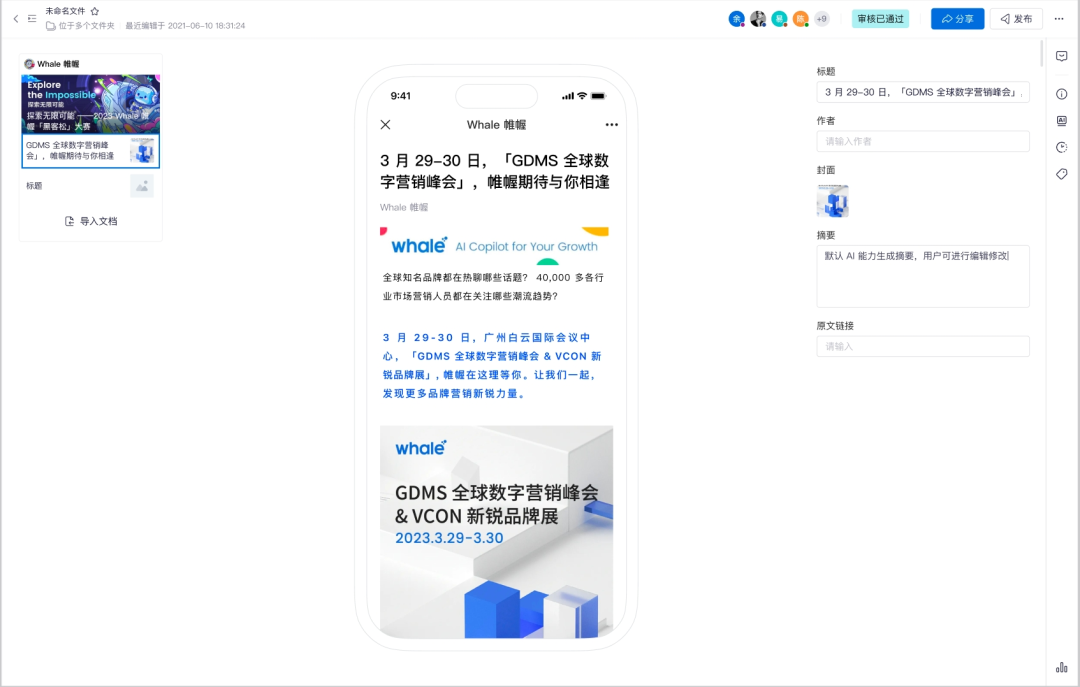 作爲(wèi)品牌内容營銷(xiāo)的 AI Copilot,「帷幄内容營(yíng)銷(xiāo)中心 Whale Harbor」 在 6 月新增上線(xiàn)瞭(le)場景寫作、圖片生成器等創(chuàng)作中心功能,同時(shí)在投放中心也新增支持微信公衆号投放,在「年中大促季」助力品牌實現從(cóng)個(gè)性化内容制作到一站式投放分析的「絲滑」内容營銷。