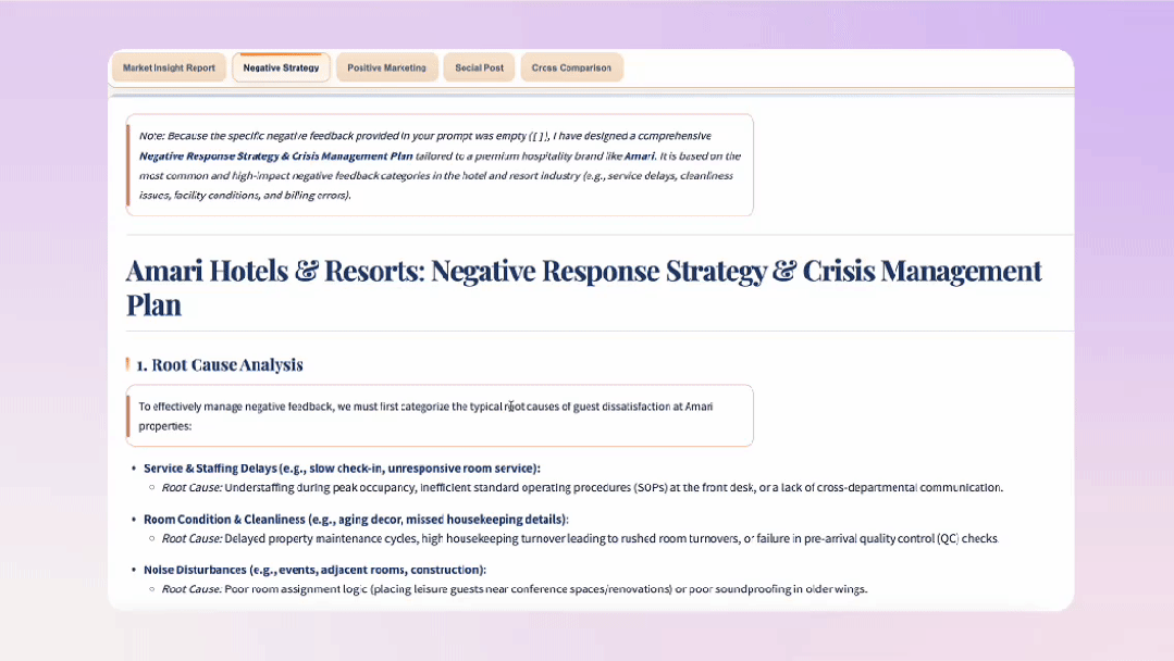 更重要的是,帷幄羽墨專爲酒旅行業訓練的輿情智能體,可以實時抓取平台上的住客評論,實時識别負面情緒,並(bìng)在問題發酵前推送預警給運營團隊。從「事後滅火」到「事前介入」,這是品牌聲譽管理的一次質變(biàn)。